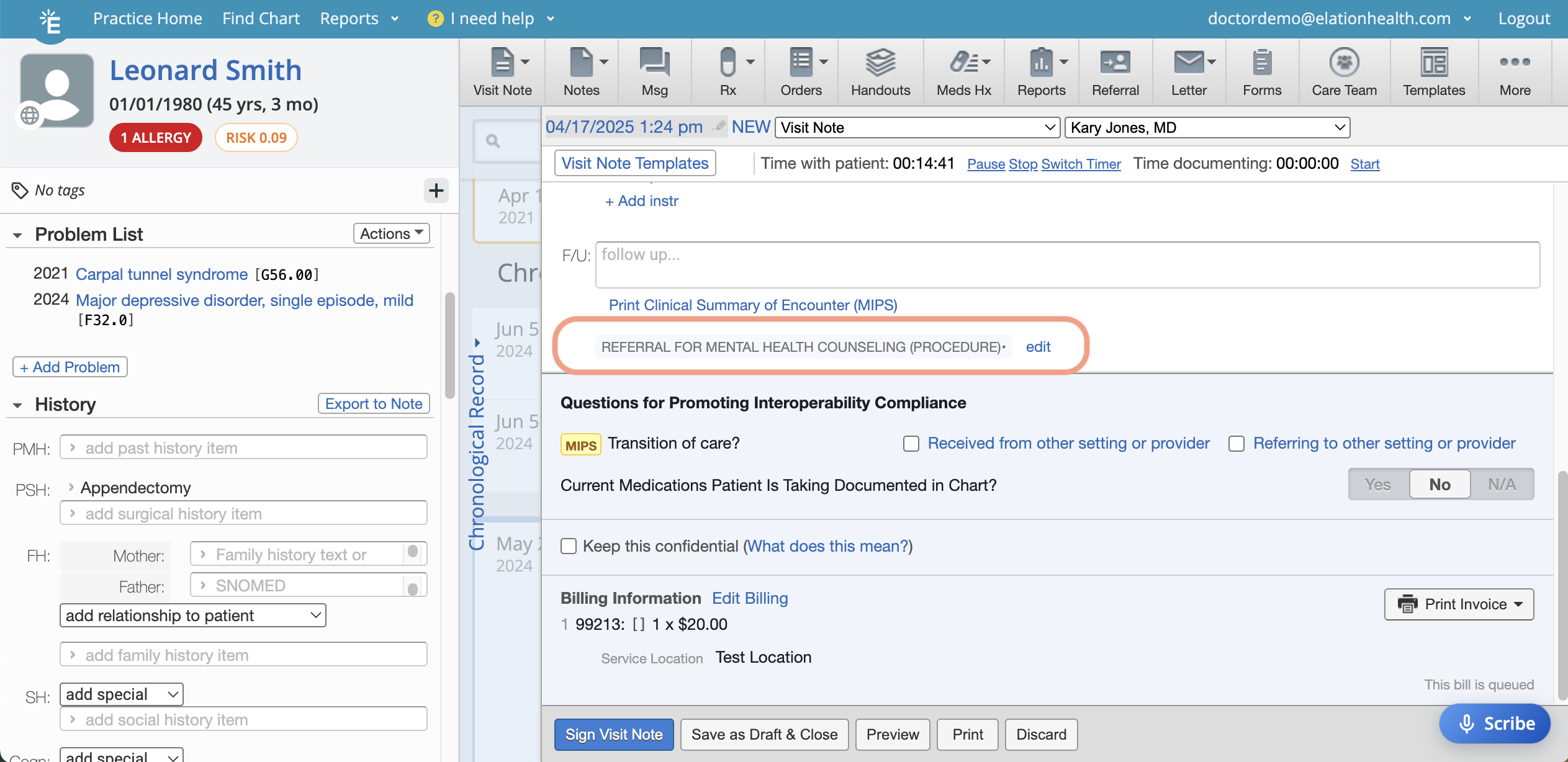 - Use the Referral feature to refer the patient for counseling.