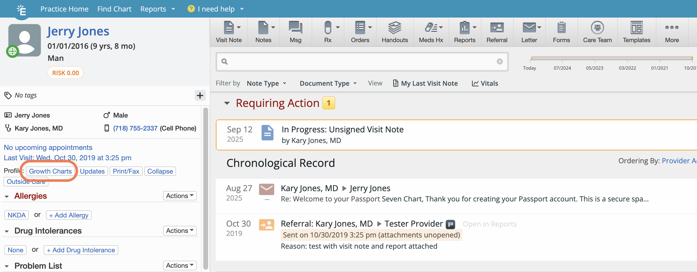 To attach a growth chart to a Patient Letter, Provider Letter or Referral: