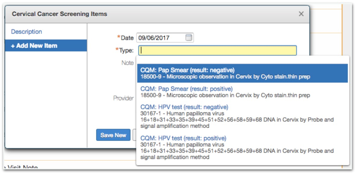 If an item has already been met for the patient, based on records in the chart, there will be text indication in gray to the right of the measure to tell you when the measure has been satisfied. We search the entire patient chart for codes, such as HCPCS, LOINC, SNOMED, or ICD-10 that are recorded via lab results, bills, problem list diagnoses, and document tags on reports and/or visit notes.