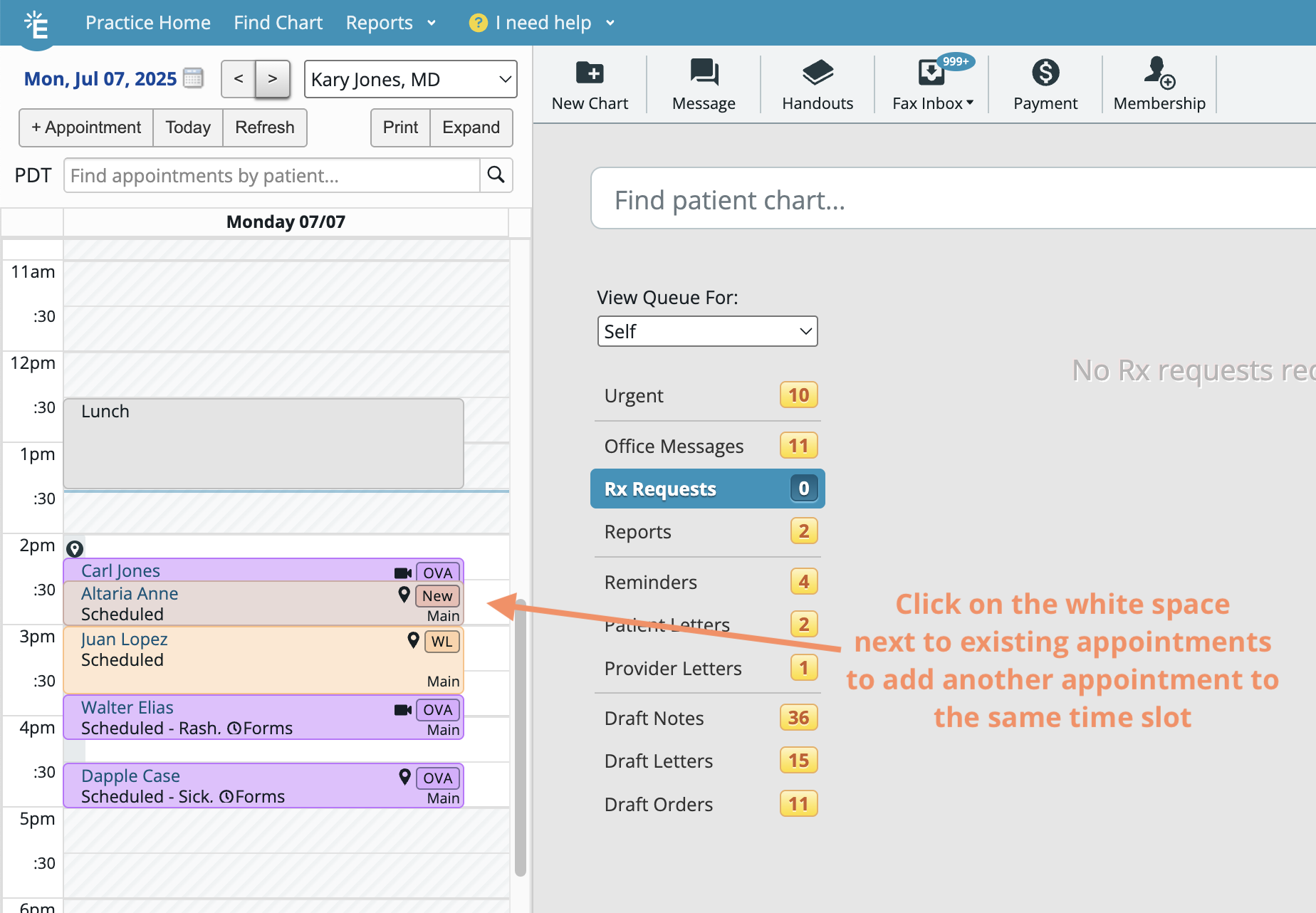 To book overlapping appointments, click on the white space to the right of the time slot.
